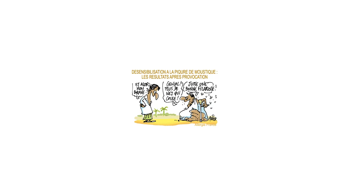 - L’allergie au moustique est bien connue mais l’immunothérapie au moustique doit encore être validée en utilisant des variables cliniques et immunologiques.