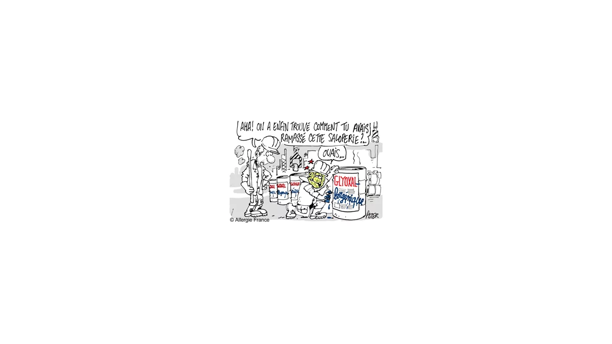 Allergie professionnelle de contact au glyoxal : Aalto-Korte K, Makela EA, Huttunen M, Suuronen K, Jolanki R.