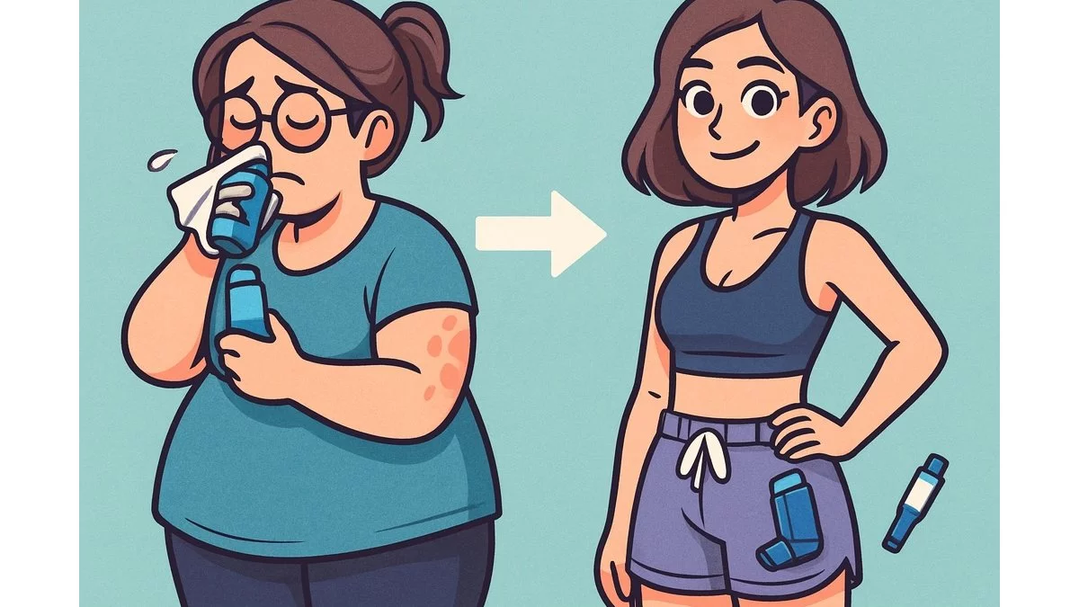 Visser E, Ten Have L, Ten Brinke A, de Jong K. Effect of Biologic Therapy on Total Body Composition in Severe Asthma. Ann Am Thorac Soc. 2023 Dec ;20(12):1825-1828. doi : 10.1513/AnnalsATS.202304-321RL. PMID : 37703386. s’interroge sur les modifications de masse corrélées à la prise de ces traitements.