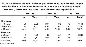 "Au total, 38 748 décés par asthme sont survenus entre 1980 et 1999 en France métropolitaine chez ses résidents :
