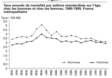 Une fois ce pic des années 1986 passé, la mortalité par asthme chez les moins de 45 ans, hommes et femmes confondus, baisse tout en restant supérieure à celle du début des années 1980.